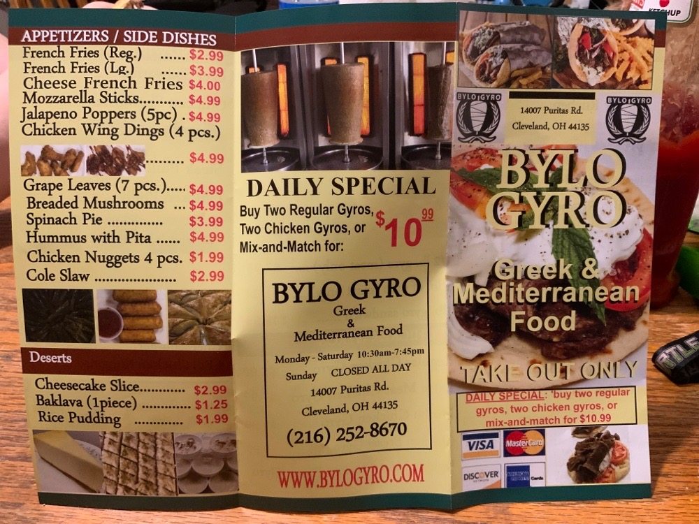 Bylo Gyro Bob's offers a variety of delicious sandwiches, including Gyro Sandwiches, Chicken Gyro Sandwiches, and Falafel Sandwiches. Their menu also features Gyro Sandwich Combos for those who want a bit more. Located in Cleveland, Ohio, this spot is known for its quick service, affordable prices, and quality food. Customers rave about the fresh and flavorful gyros, highlighting the generous portions and great value for the money. With an array of vegetarian options, Bylo Gyro Bob's is a go-to for both meat lovers and plant-based eaters. The casual atmosphere and convenient takeout options make it a favorite among locals. Don't miss out on trying their signature gyro sandwich, a standout item that keeps people coming back for more.